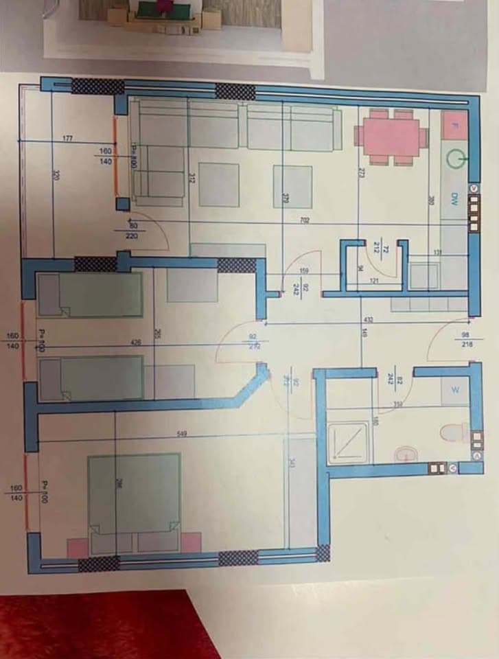 Sallon + kuzhinë, 2 dhoma gjumi, banjo, ballkon, depo